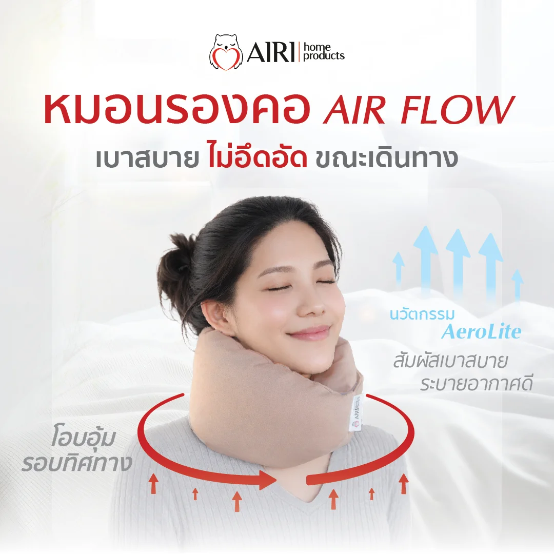 เบาสบาย ไม่อึดอัด ขณะเดินทางด้วยหมอนรองคอไอริ รุ่น AIR FLOW หมอนรองคอจากประเทศเกาหลี ด้วยนวัตกรรม AeroLite สัมผัสนุ่มสบาย ระบายอากาศดี ไม่ร้อน ไม่อึดอัด ทำให้คุณหลับเต็มอิ่มพร้อมทุกการเดินทาง